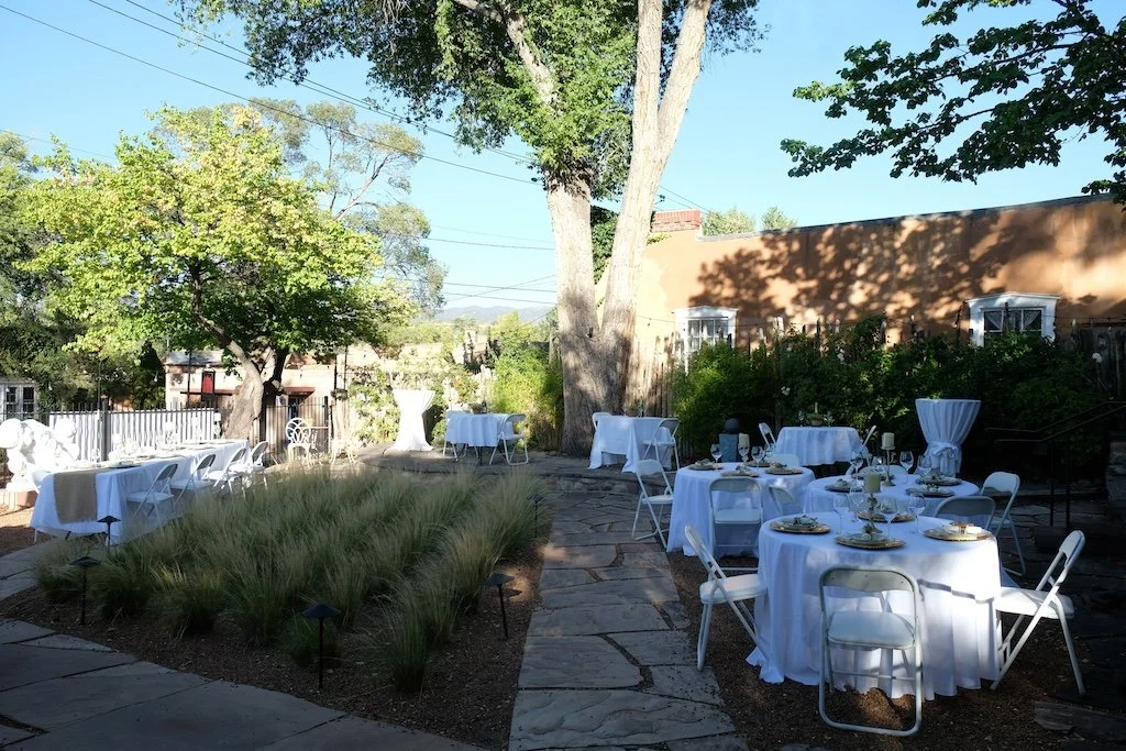 Convenient off-street parking for four cars is accessible from Garcia, along with a serene rear enclosed. Our venue is perfect for wedding ceremonies and receptions, corporate or private events, dinner parties, and small performances, as the rich history of the home, art collection, and property lends itself to an authentic Santa Fe experience. Whether you're celebrating a milestone or hosting a professional gathering, we provide a unique and captivating setting that will leave a lasting impression. Please contact us for special pricing and to learn more about how we can make your event extraordinary. Make your event unforgettable at this unique historical venue!
